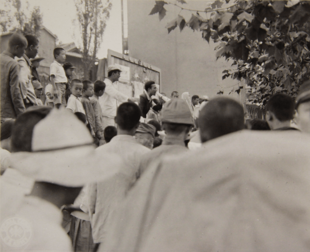 “Local Koreans demonstrating free speech…at railroad station” in Seoul. 5 Nov 1945. Photographed by S. Fusco. From NARA.